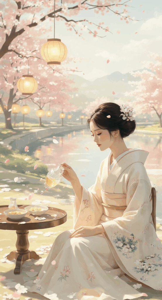 On warm summer nights, as lanterns glow beneath the fireworks, laughter fills the air. People in colorful yukata gather together — families, friends, and strangers alike — sharing cups of jizake that glimmer like liquid gold.