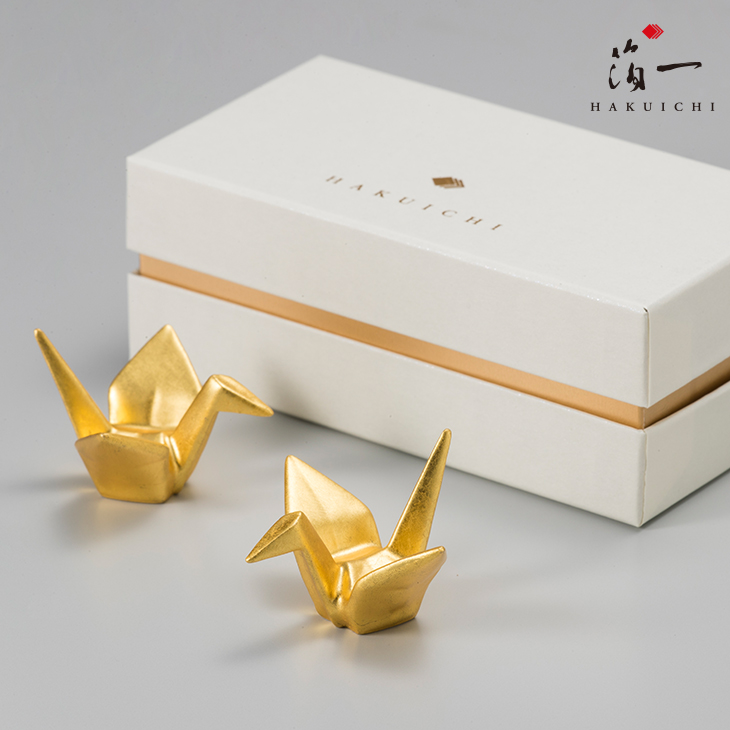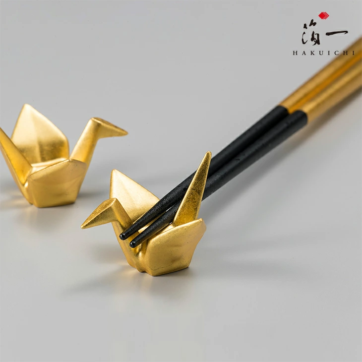 A crane-shaped chopstick rest with gold leaf—symbol of longevity, purity, and refined Japanese grace.