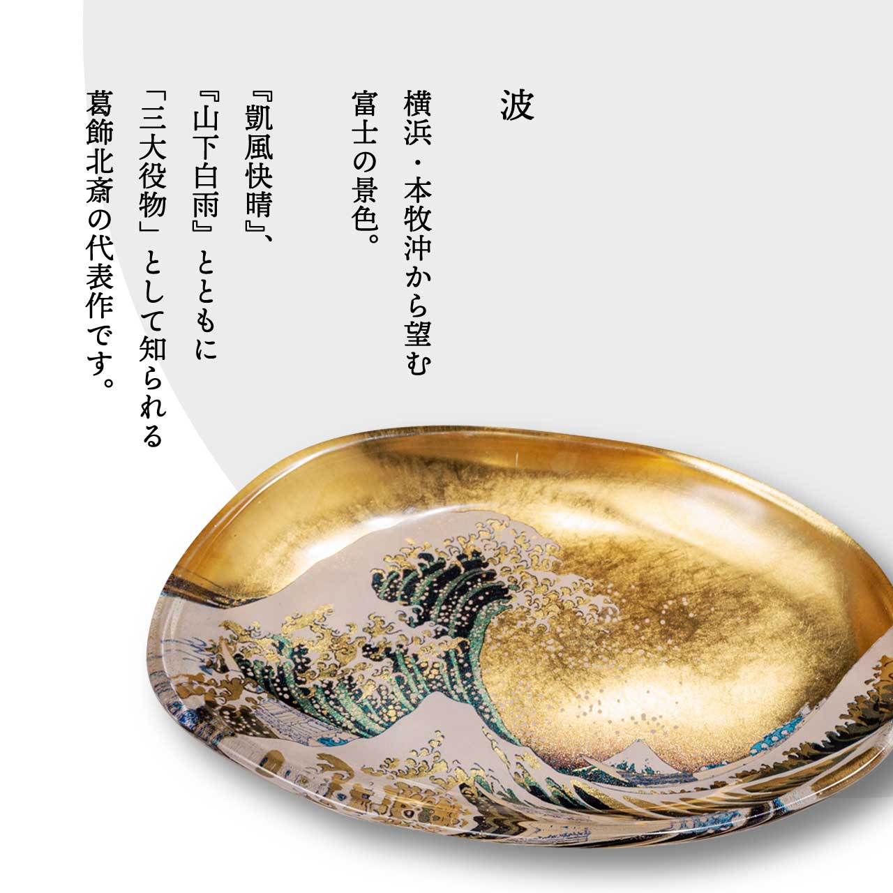 Its simple silhouette is accented by gold leaf, making it ideal for serving confectionery, sake cups, small accessories, or as a decorative piece.