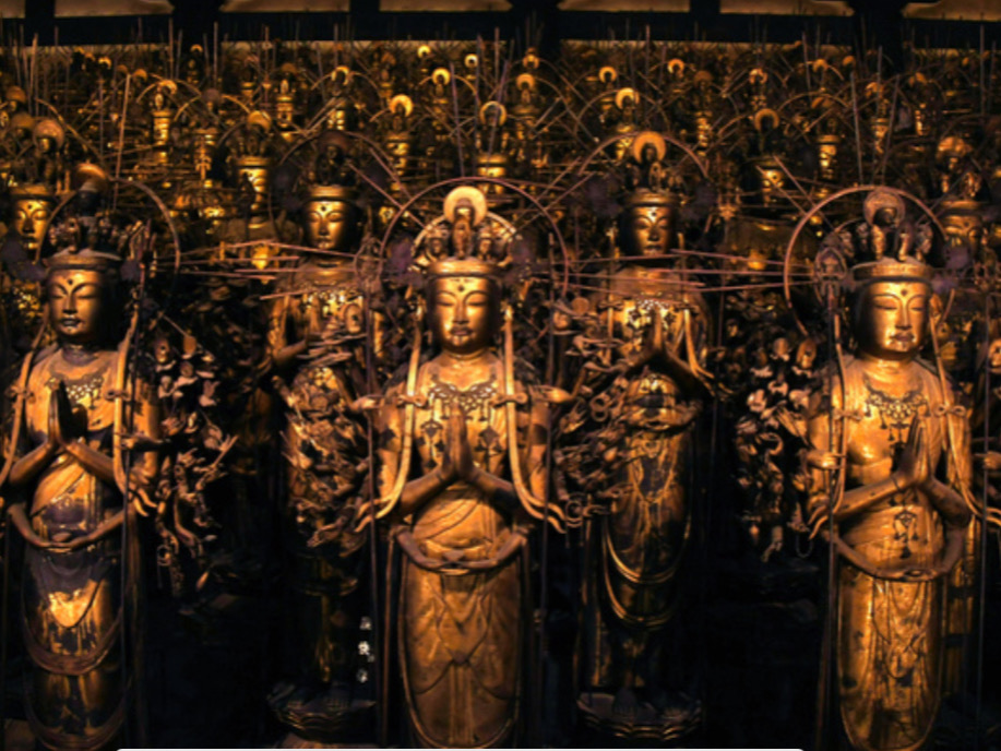 In the dim golden light of Kyoto’s Sanjūsangen-dō, time breathes in silence.